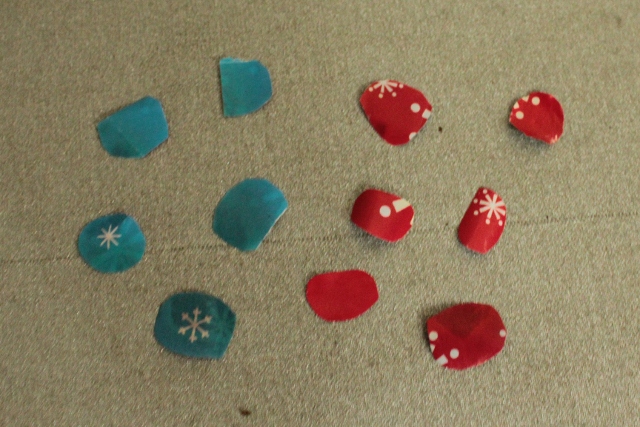 3) Cut 6 + 6 round pieces from the red and blue color paper with a diameter of 1cm approximately for each kid.