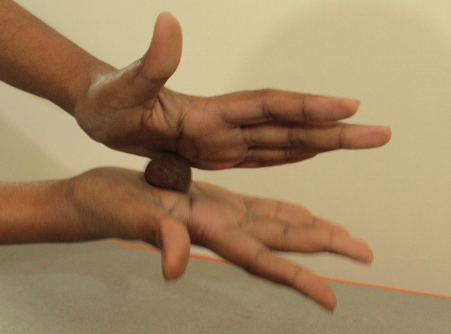 Step 2: Insert the index finger into the worked dough and pull the walls around the insertion towards the palm, so that you get a tall pot