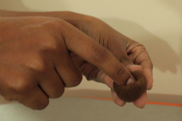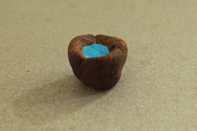 1) Mix the fine coffee powder and flour together and kneed it adding water. You’ll need a handful of dough for each kid.