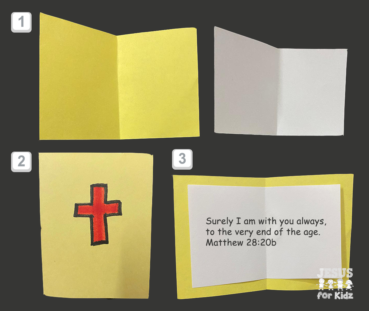 Materials Required: A small rectangular chart paper, a smaller size plain white paper, markers/ crayons for each child, Bibles