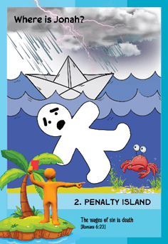 பக்கம் 2: ரோமர் 6:23-ஐ விளக்க இரண்டாவது தாளைப் பயன்படுத்தவும் – பாவத்தின் சம்பளம் மரணம். படம் மிகவும் இருண்ட இடத்தைப் படம் எடுப்பது போல் ஒரு கேமராவைக் காட்டுகிறது. பாவத்தின் நித்திய விளைவைப் பற்றி விவாதிக்கவும். இவாறு கேள்விகள் கேட்டு அவர்களை சிந்திக்க தூண்டுங்கள் – தேவனிடமிருந்து பிரிவது எப்படி இருக்கும் (பதில்: மகிழ்ச்சி மற்றும் சந்தோஷத்திற்கு எதிரான இடமாய் இருக்கும்). நரகம் பற்றி ஒரு பயத்தை உருவாக்குவது நமது நோக்கமல்ல; மாறாக தேவன் இல்லாத நிலையை அவர்களுக்கு உணர்துவதே நமது நோக்கம். ஏனென்றால் தேவனை விட்டு விலகி இருப்பர்வர்கள், கவலை, பாரம், தனிமை என்று ஒரு நரகத்தில் தான் பூமியில்லே வாழ்கிறார்கள்.