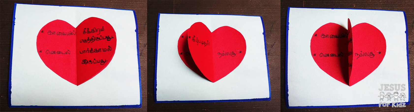 தேவையான பொருள்கள்: மேலே ஹார்ட் கிராஃப்ட் செய்யப்பட்டது