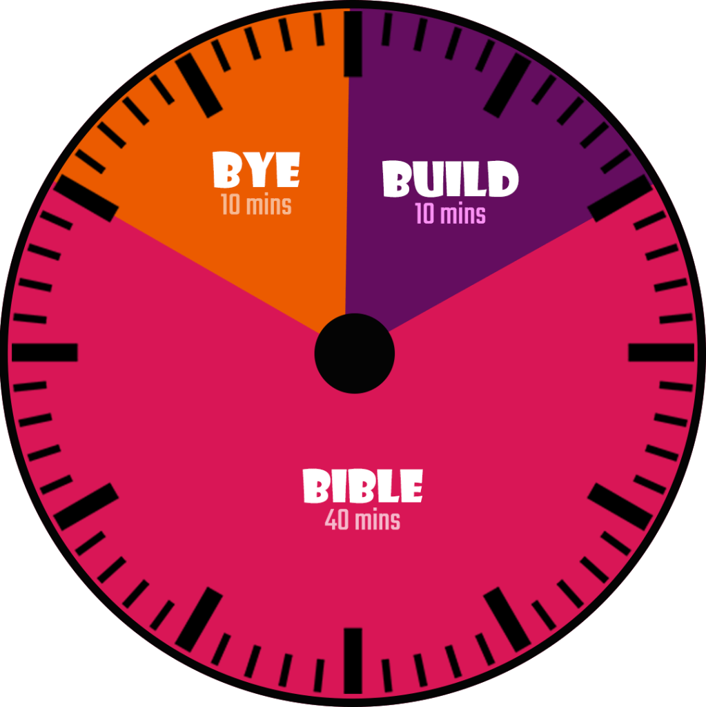 - 3 Segments: Build Time → Bible Time → Bye Time