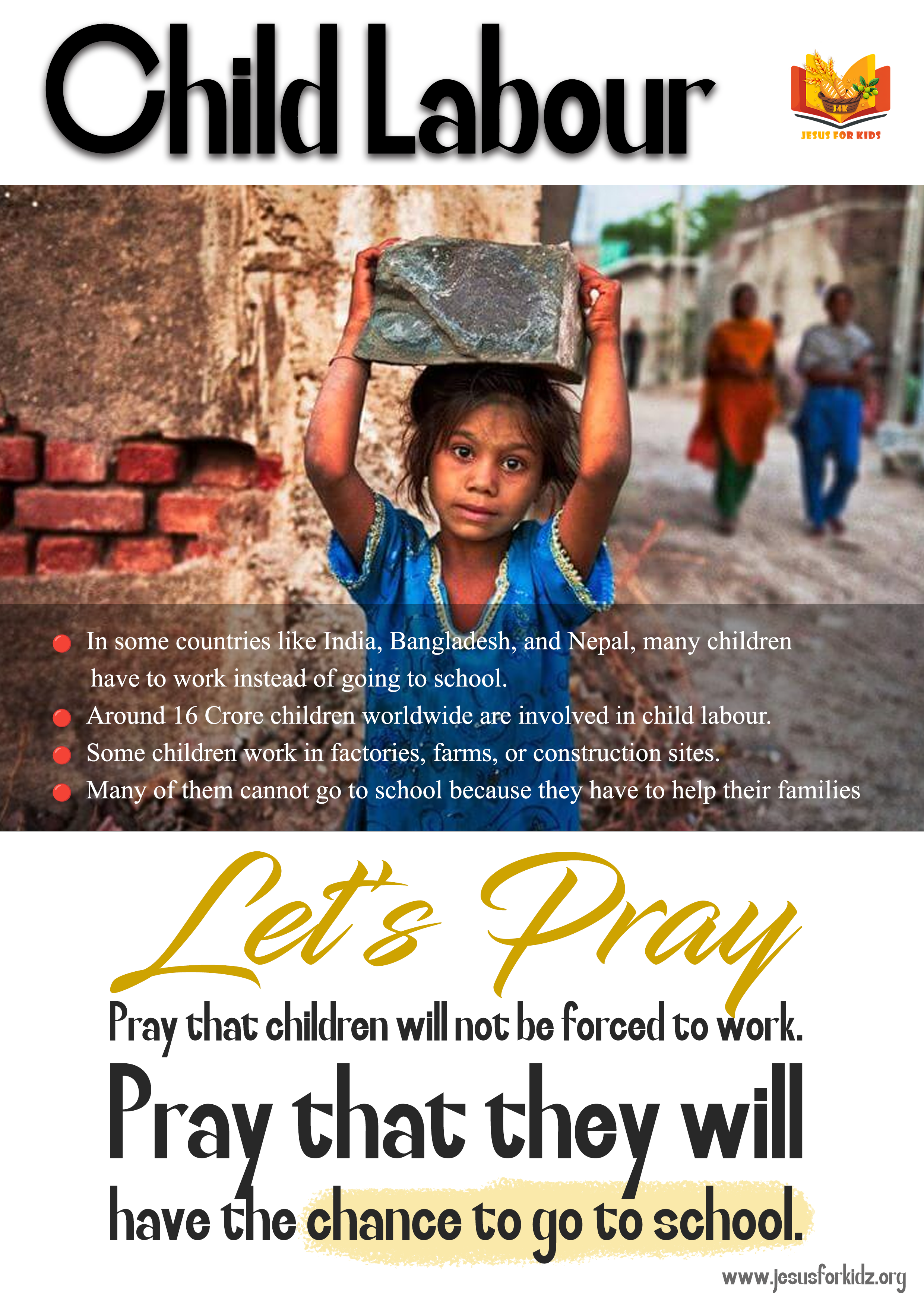 - Pray that children will not be forced to work.