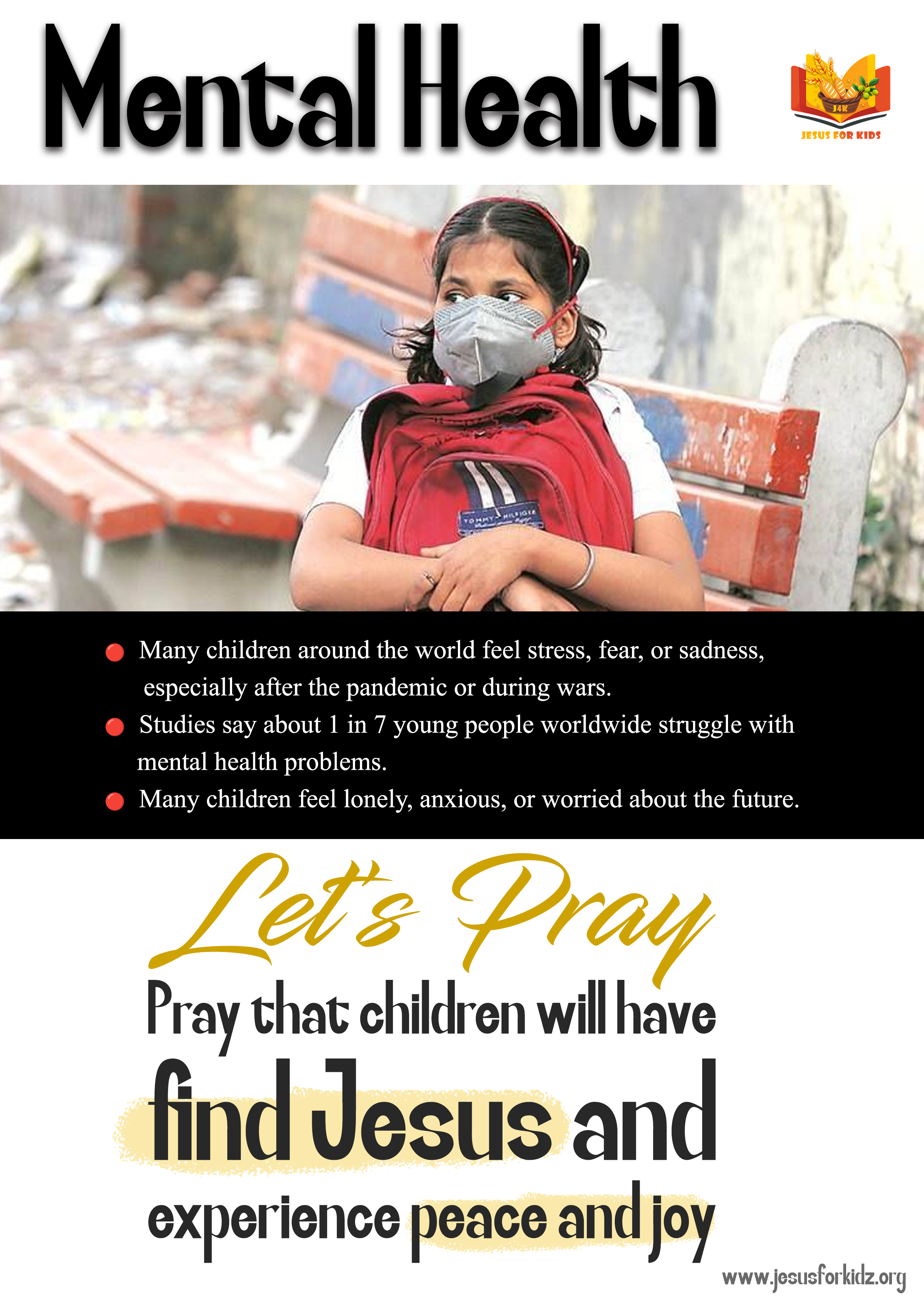 - Pray that children will have find Jesus and experience peace and joy.